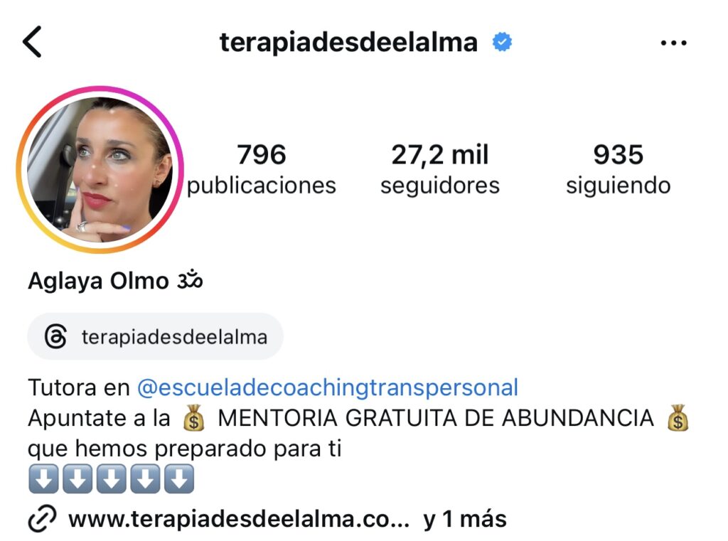 Aglaya @terapiadesdeelalma generó +25000 seguidores en sólo una semana! Ha generado +10K desde que esta en el Sistema High Ticket Coach con IA
