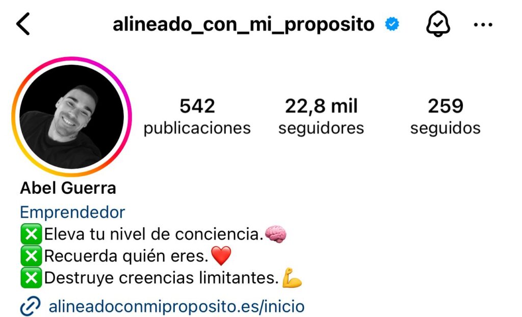 Abel @alineado_con_mi_proposito creó su marca personal de 0 y consiguió generar +22.000 seguidores en Instagram y +72.000 seguidores en Tiktok con las Mentorías de Jorge. Y facturó + 10K con su marca personal.